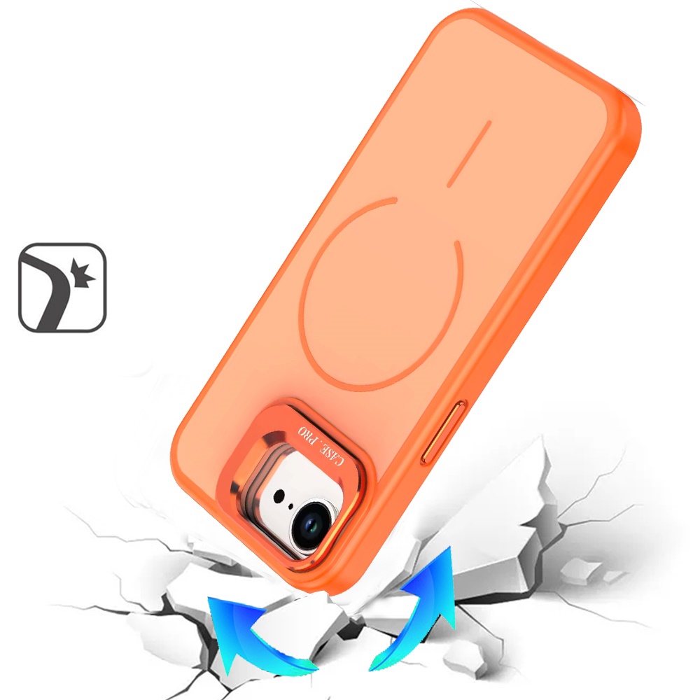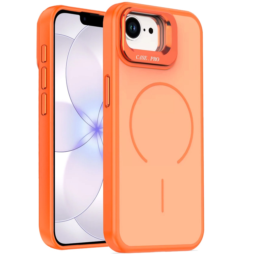 For iPhone 16E (E edition) / SE4 (2025) Premium Matte Magnetic Metal Camera Stand Hybrid Case - Cosmic Orange