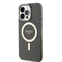 For IP 14 Pro Max - GUESS MAGSAFE IML GLITTER - Gold/Black