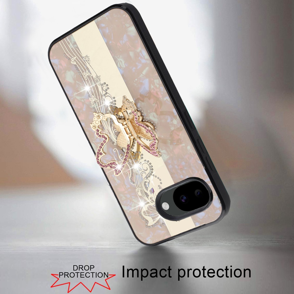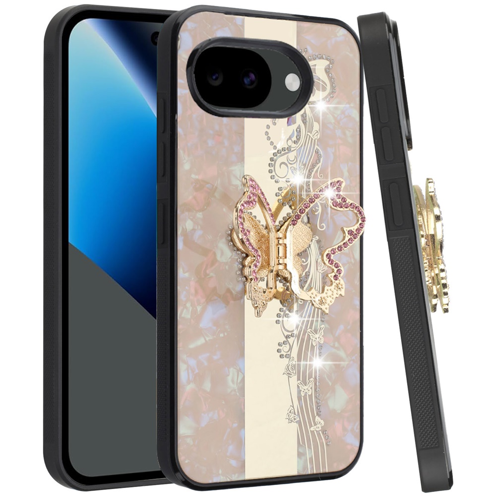 For Google Pixel 10a SPLENDID Diamond Glitter Ornaments Engraving Case Cover - Enchanted Butterfly Gold