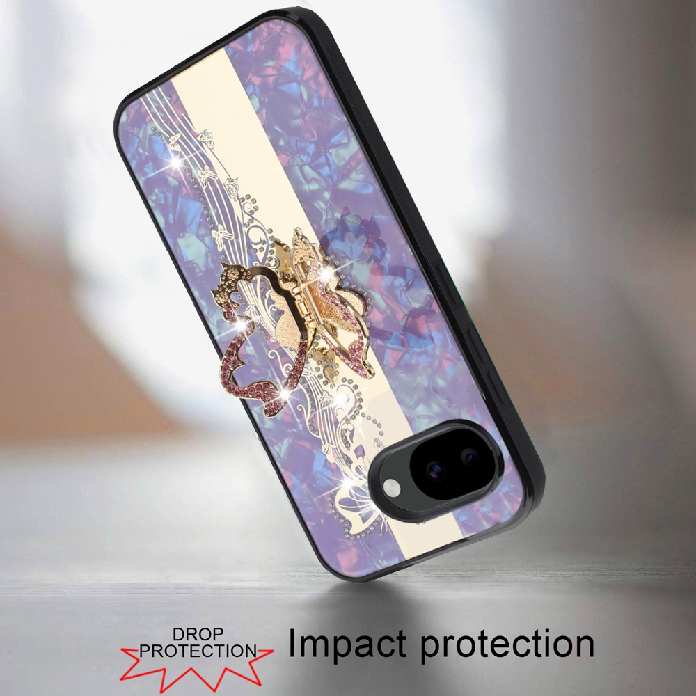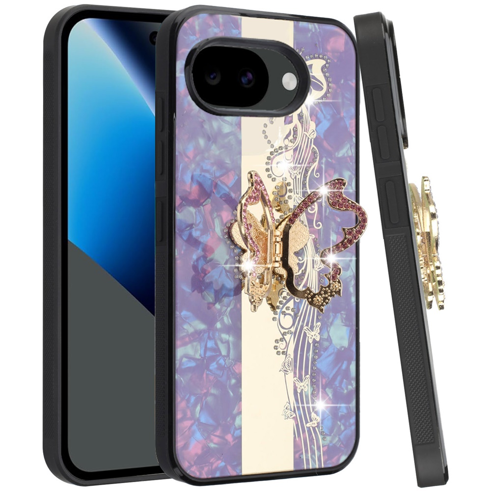 For Google Pixel 10a SPLENDID Diamond Glitter Ornaments Engraving Case Cover - Enchanted Butterfly Purple