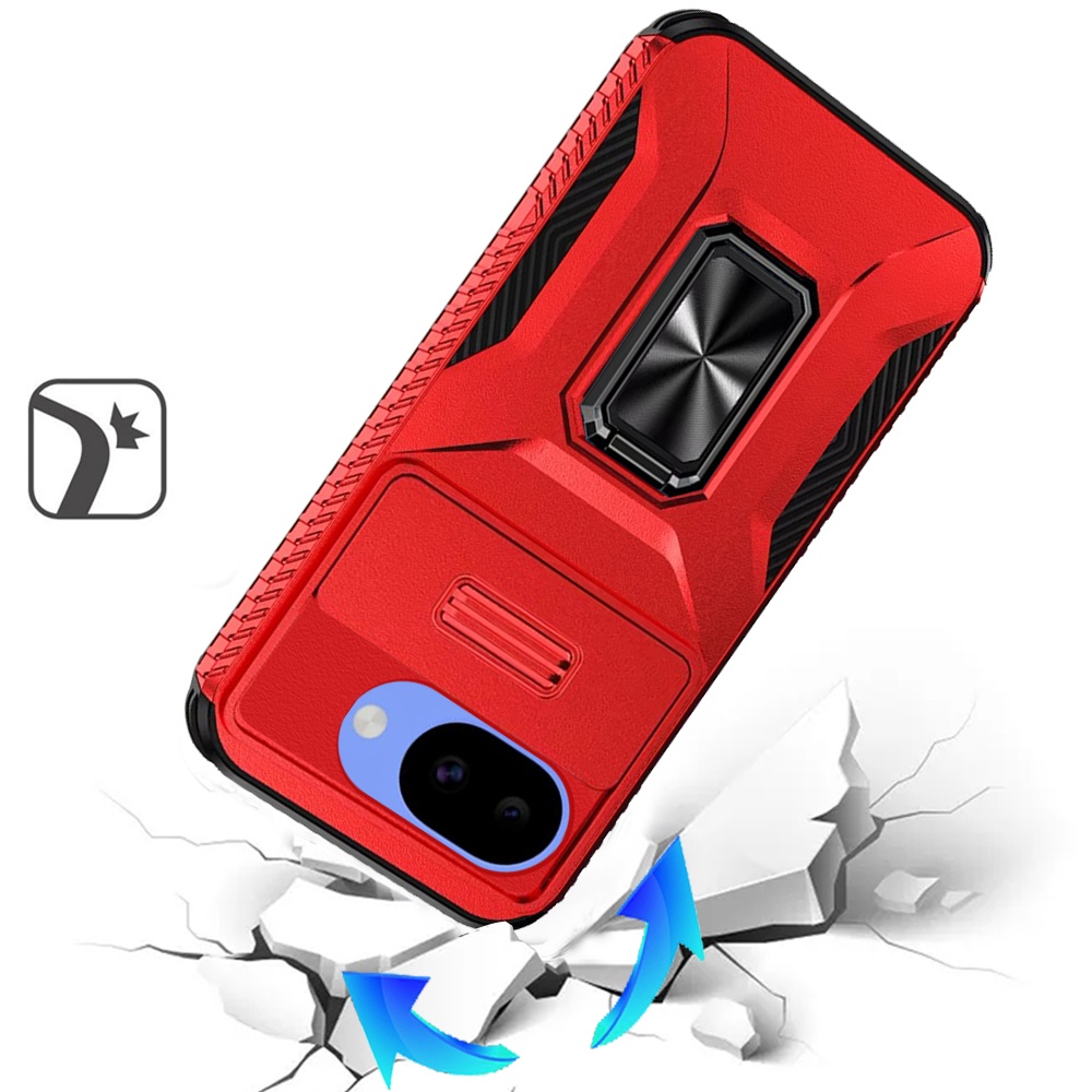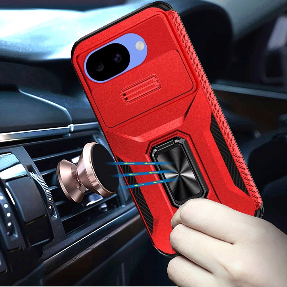 For Google Pixel 10a Complete Magnetic Metal Ring Stand Camera Protection Hybrid - Red