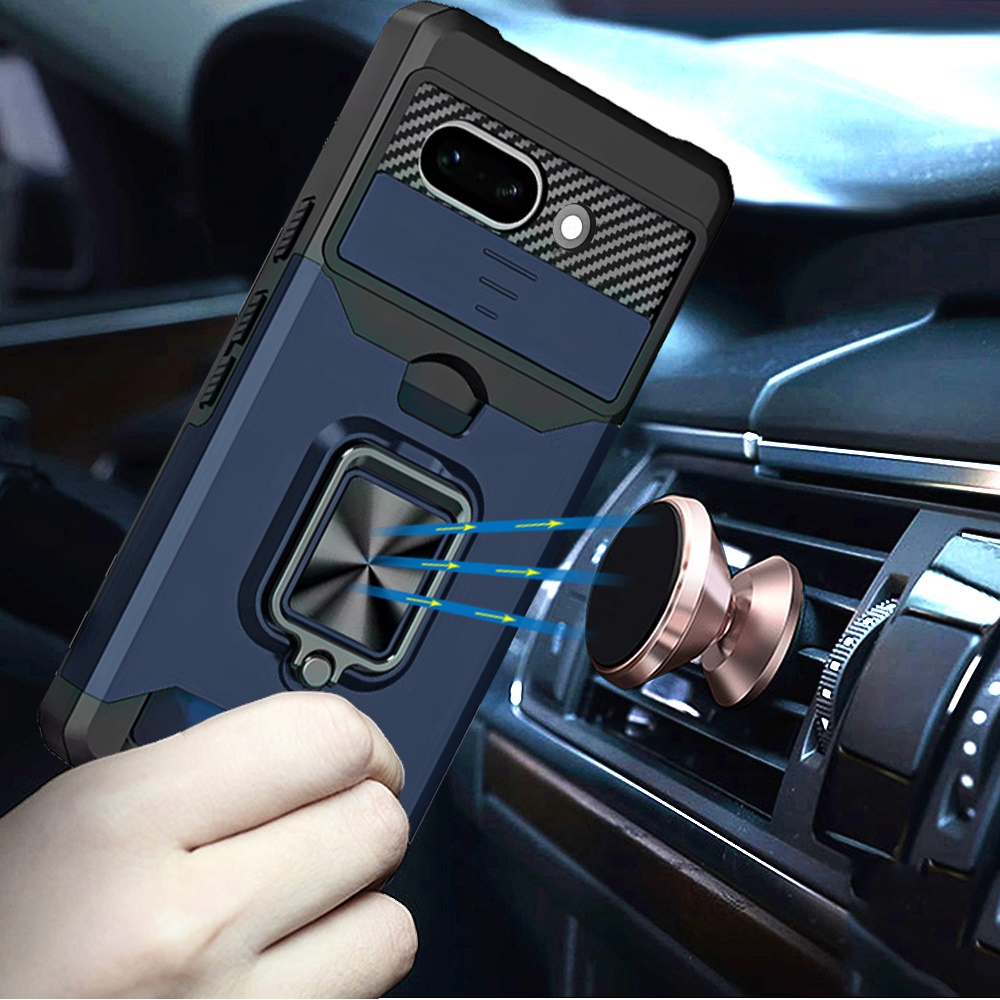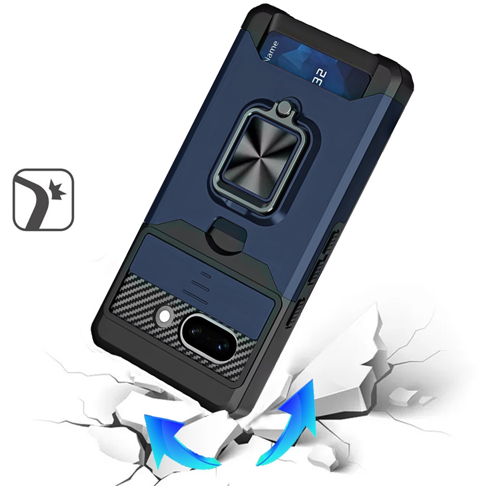 For Google Pixel 10a Multi-Functional Card Magnetic Ring Stand Hybrid Camera Case Cover - Blue