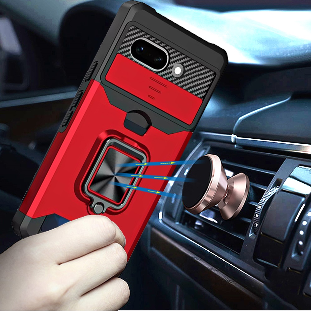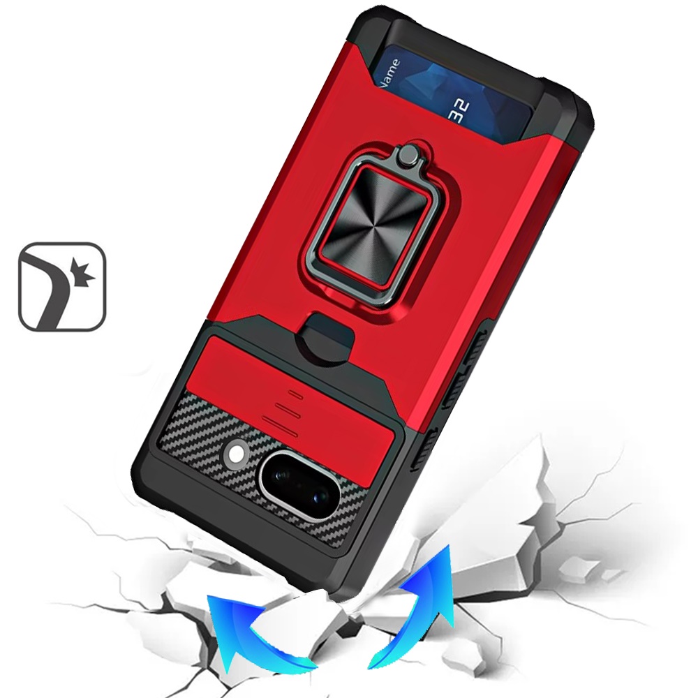 For Google Pixel 10a Multi-Functional Card Magnetic Ring Stand Hybrid Camera Case Cover - Red