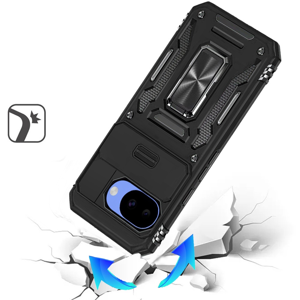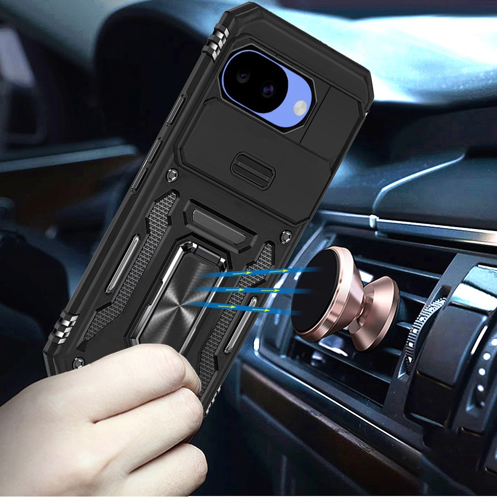 For Google Pixel 10a Utter Tough Metal Ring Movable Camera Window Hybrid Case Cover - Black