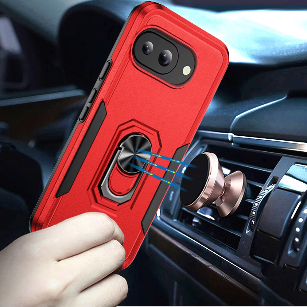 For Google Pixel 10a Tough Hybrid With Ring Stand Case - Red