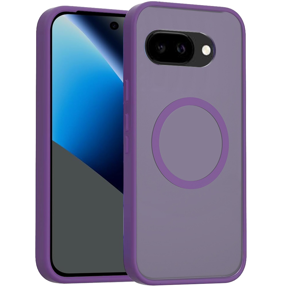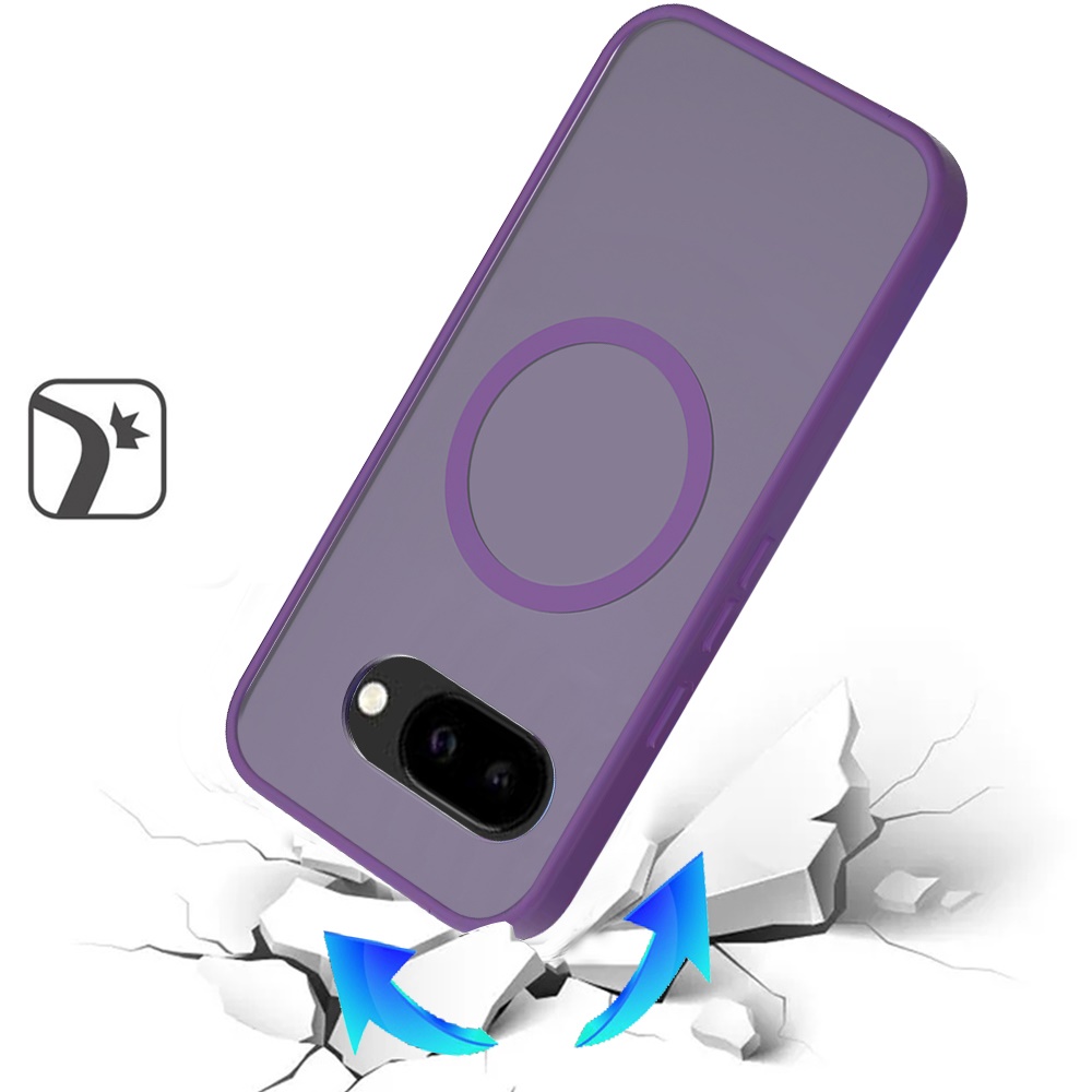 For Google Pixel 10a [Magnetic Circle] Smooth Safe Matte Feel Hybrid Case - Dark Purple