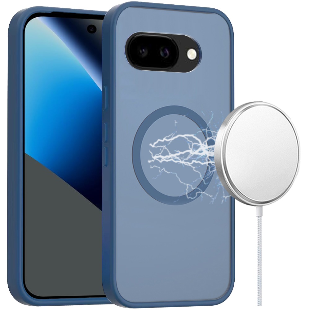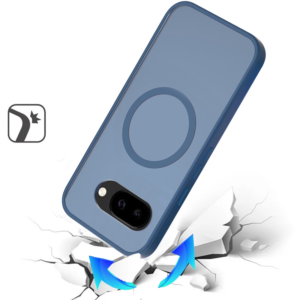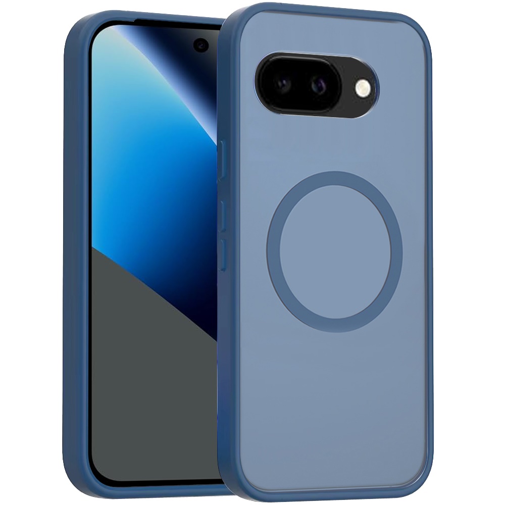 For Google Pixel 10a [Magnetic Circle] Smooth Safe Matte Feel Hybrid Case - Navy Blue