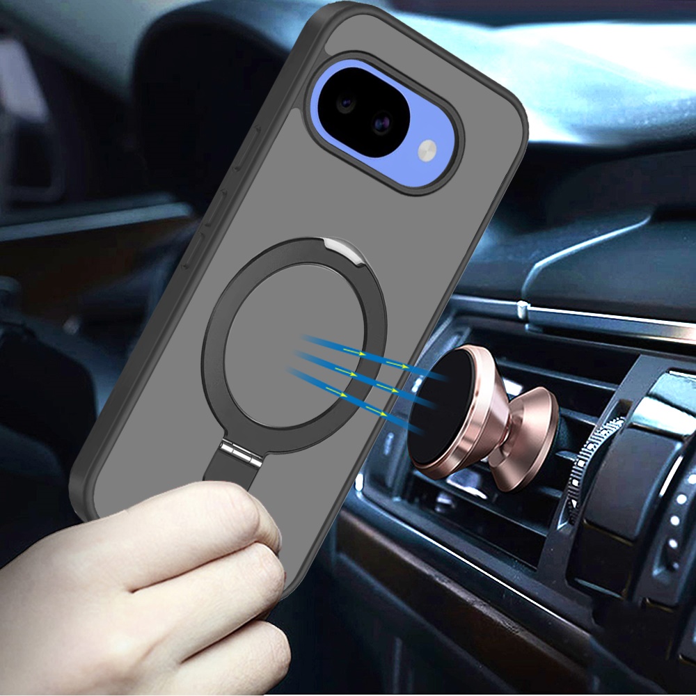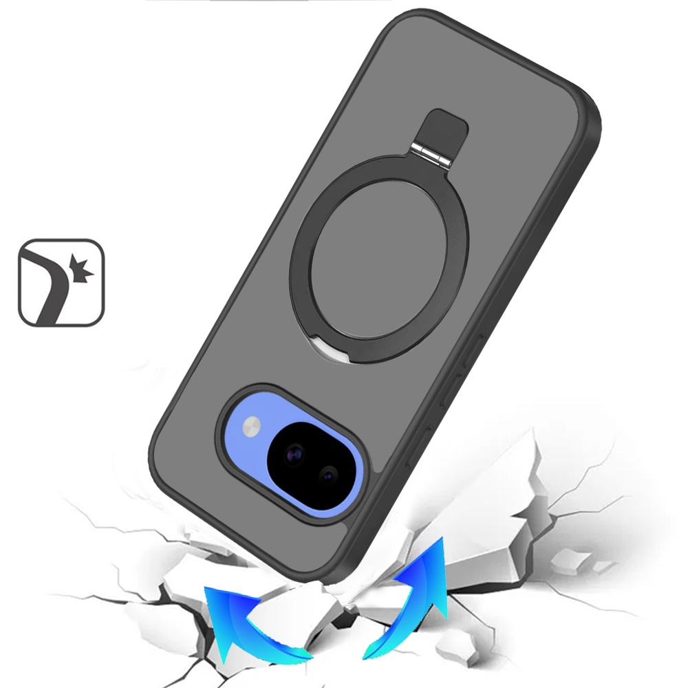 For Google Pixel 10a Magnetic Matching Ring Stand Full Rotation Matte Hybrid - Black