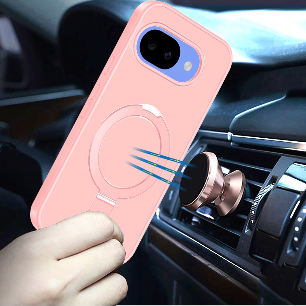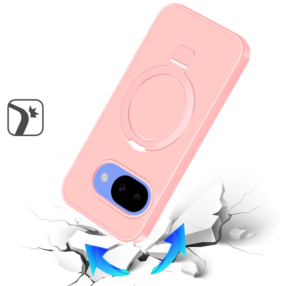 For Google Pixel 10a Magnetic Matching Ring Stand Full Rotation Matte Hybrid - Light Pink