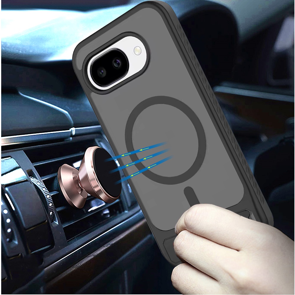 For Google Pixel 10a Matte Magnetic Hybrid with Metal Kickstand Case - Black