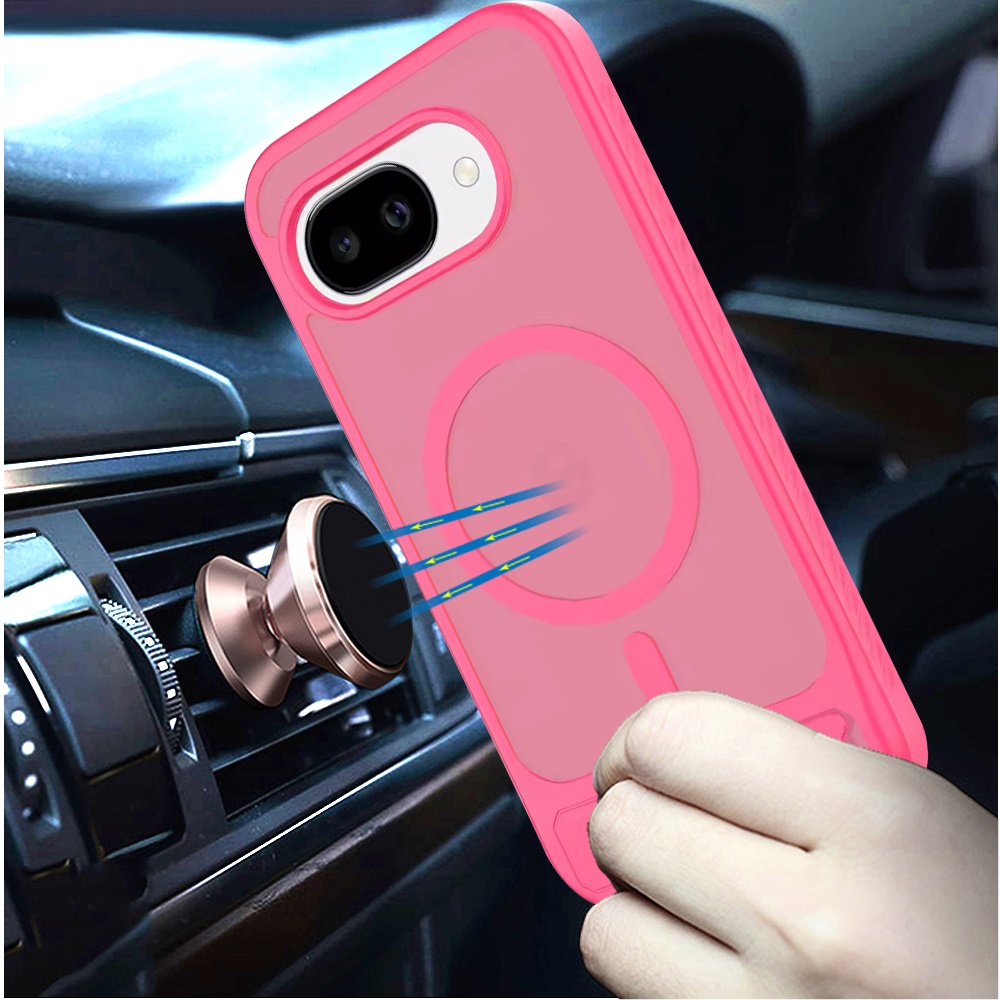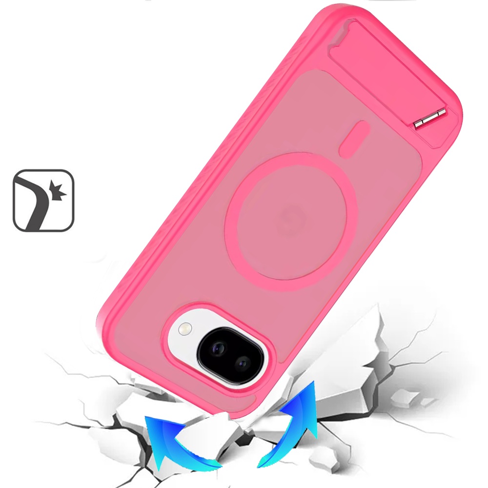 For Google Pixel 10a Matte Magnetic Hybrid with Metal Kickstand Case - Hot Pink