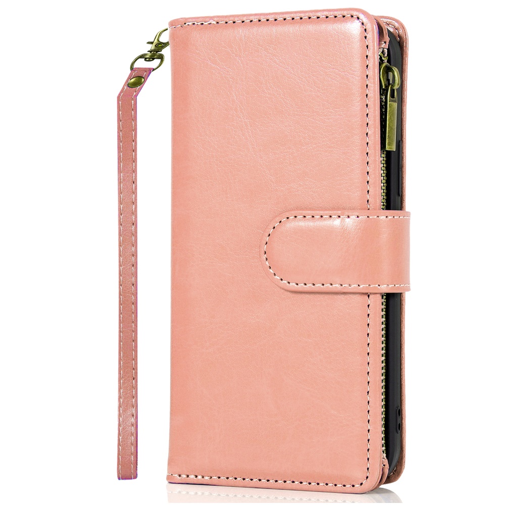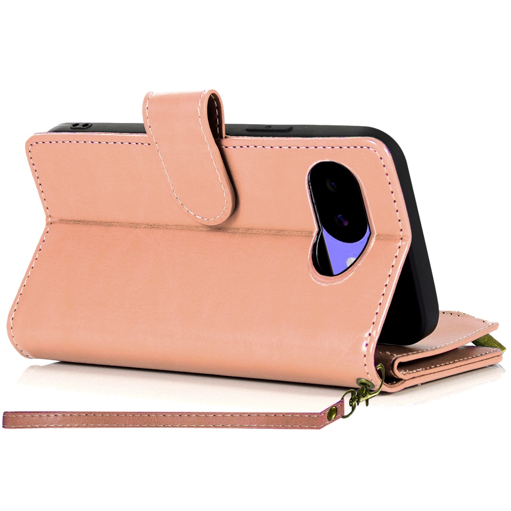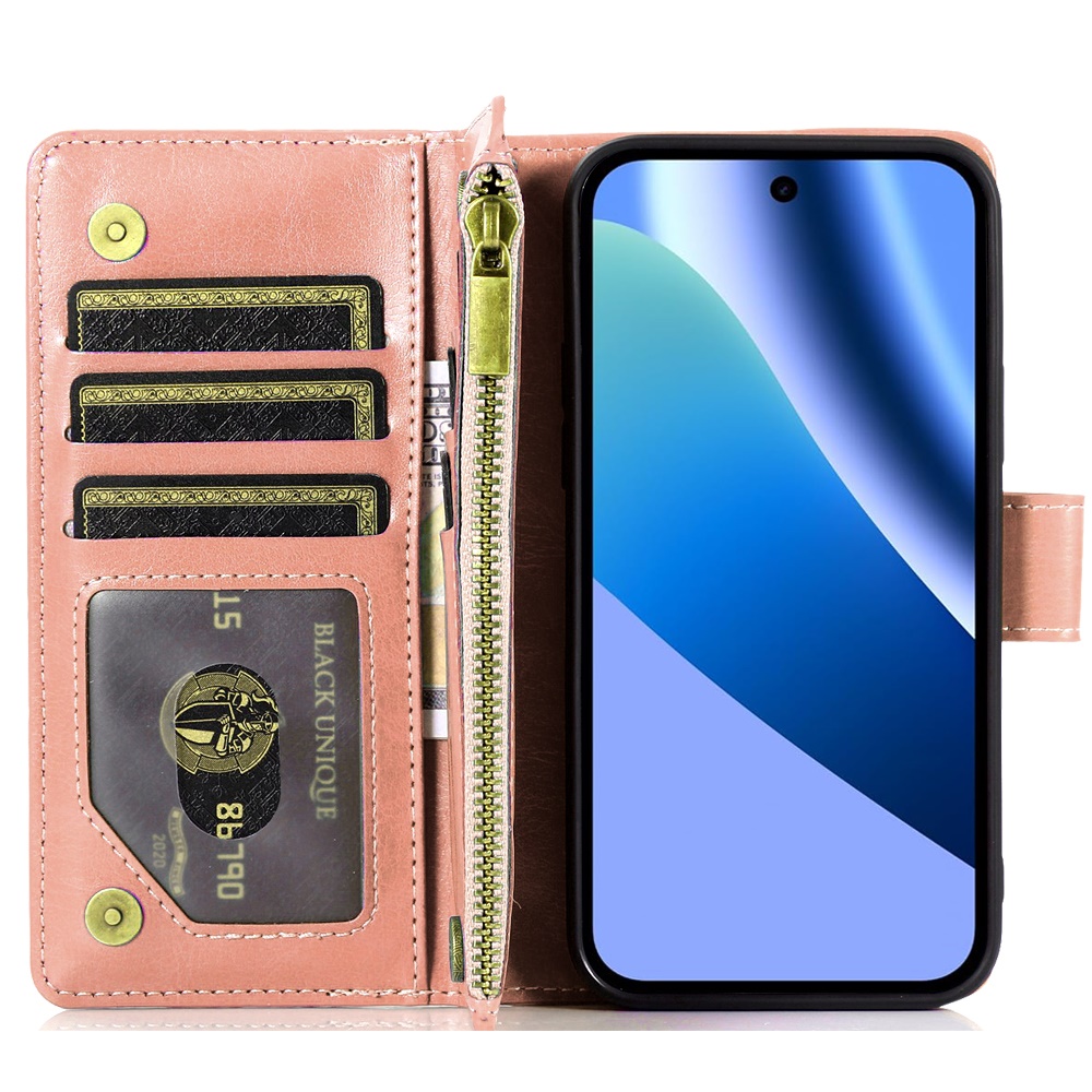 For Google Pixel 10a Luxury Wallet Card ID Zipper Money Holder Case Cover - Rose Gold