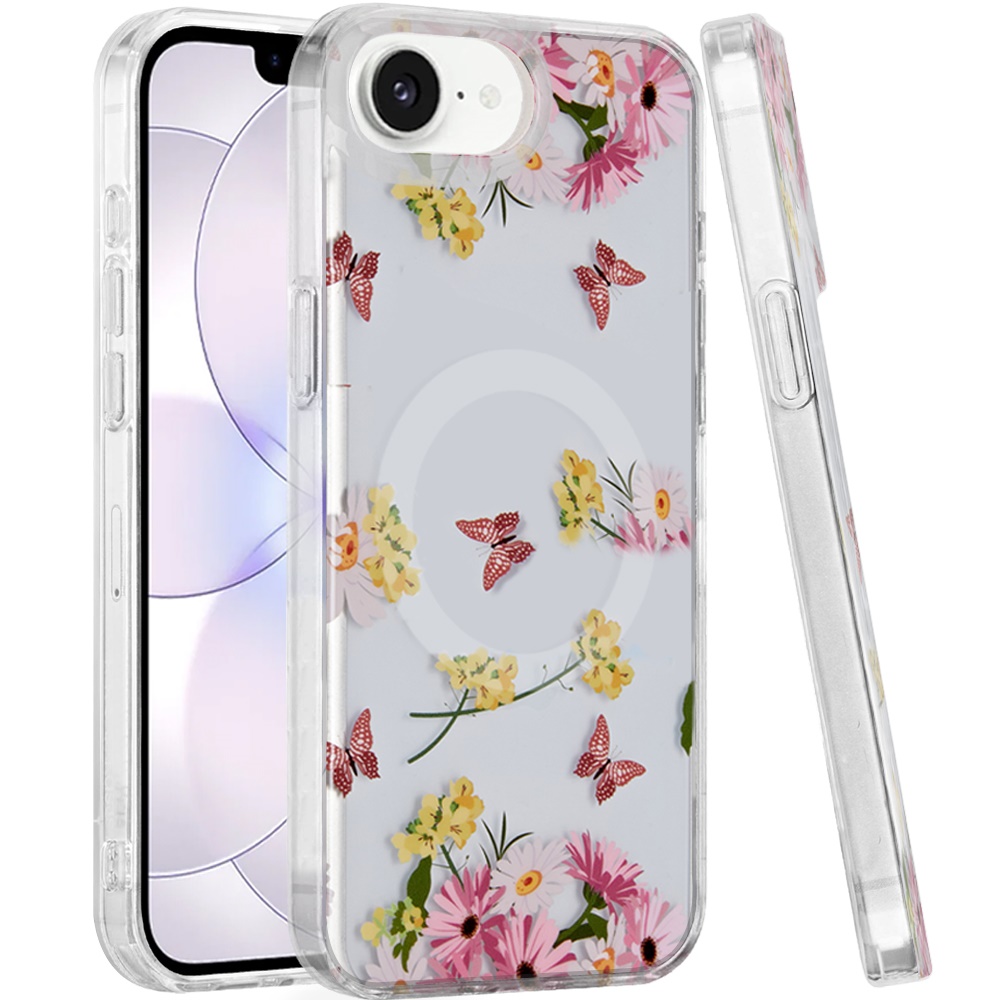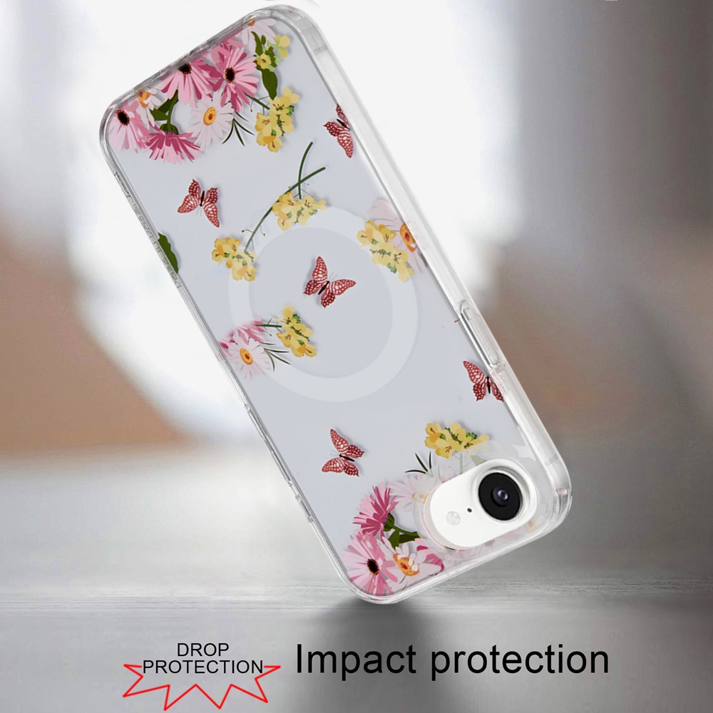 For iPhone 16E (E edition) / SE4 (2025) Double Layer Design IMD TPU Case - Floral Butterfly