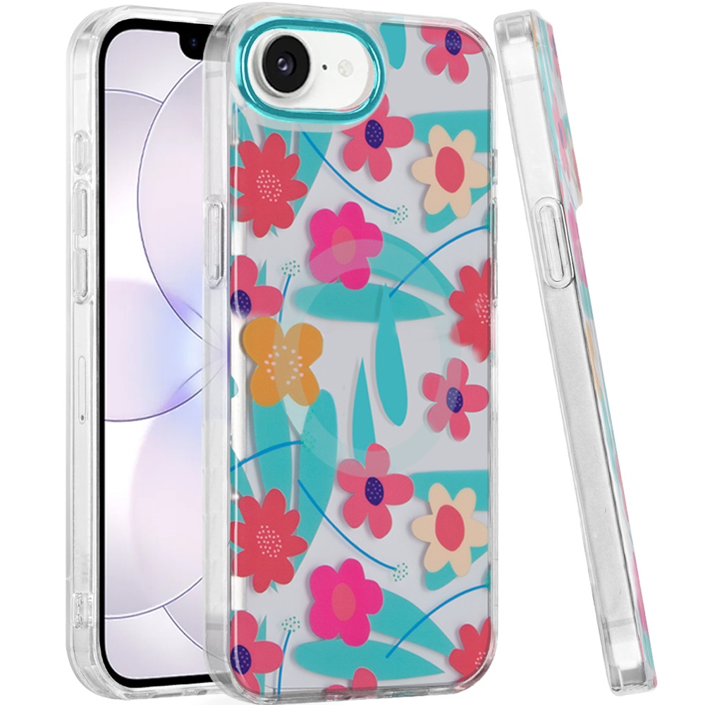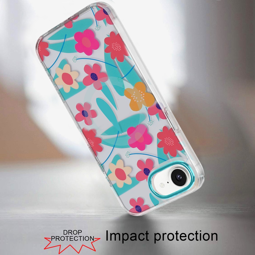 For iPhone 16E (E edition) / SE4 (2025) Double Layer Design IMD TPU Case - Pastel Floral Blue