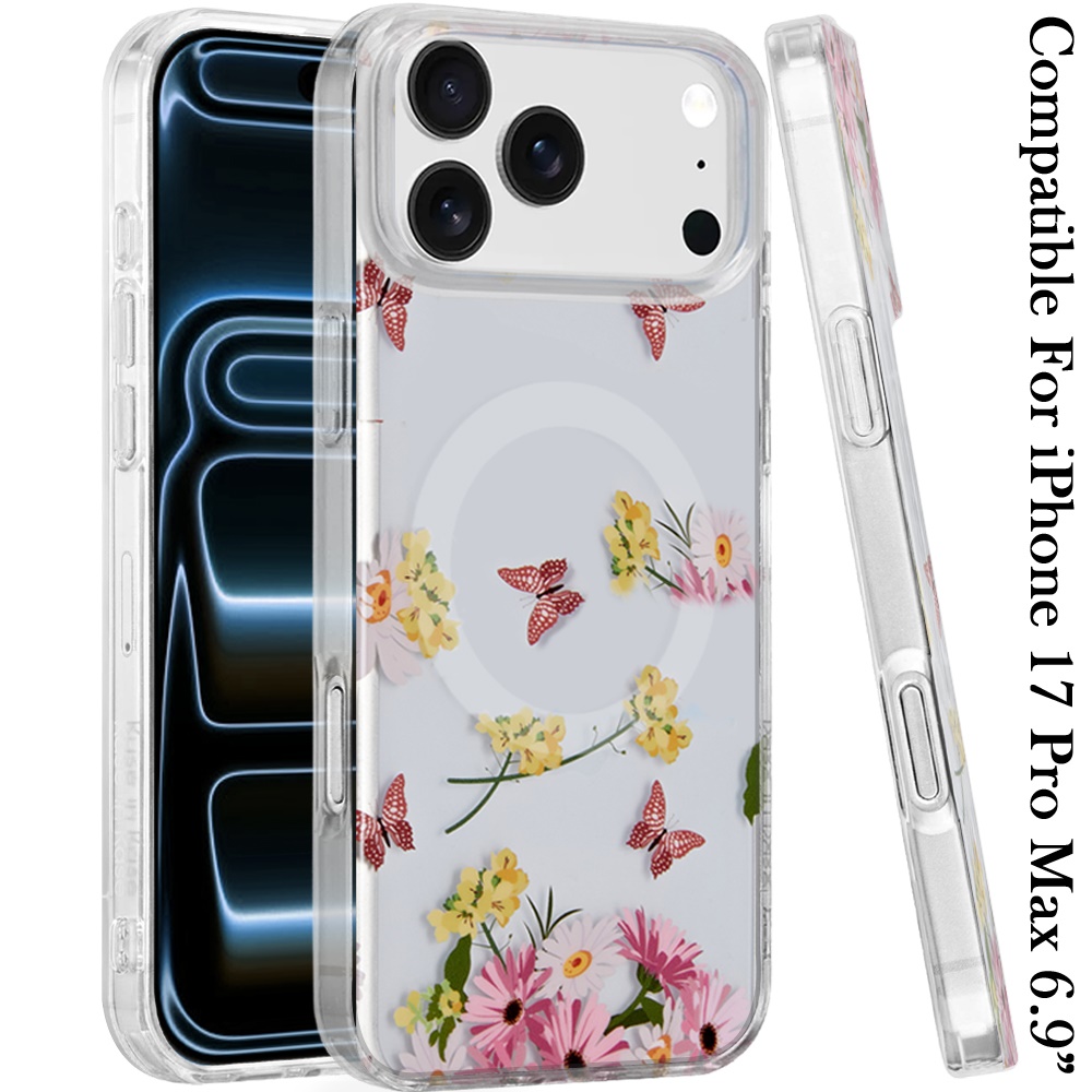 For iPhone 17 Pro Max Double layers IMD case with magsafe - Floral Butterfly