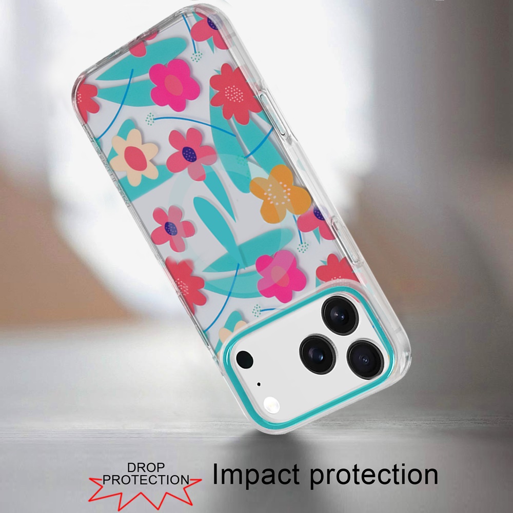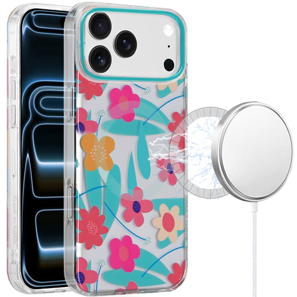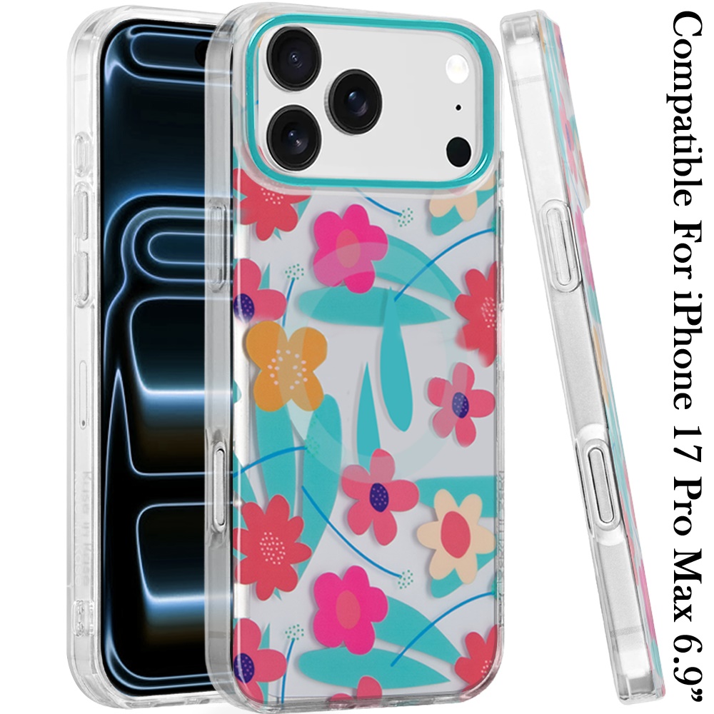 For iPhone 17 Pro Max Double layers IMD case with magsafe - Pastel Floral Blue