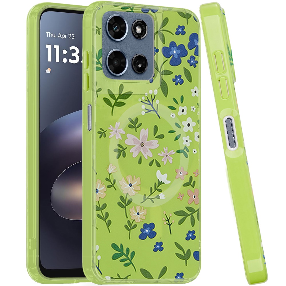 For Moto G 5G 2025/2026 / G PLAY 2026 Double layers IMD case with magsafe - Green Floral
