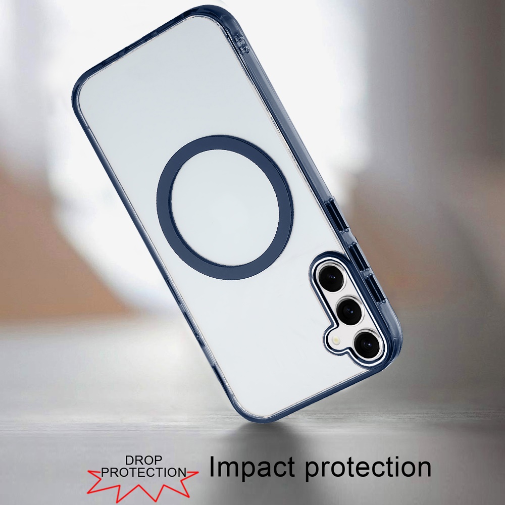 For Samsung Galaxy s24 Plus Magnetic Circle Ring Transparent Premium Acrylic Case Cover with Metal Buttons & Camera Raised Lip - Blue