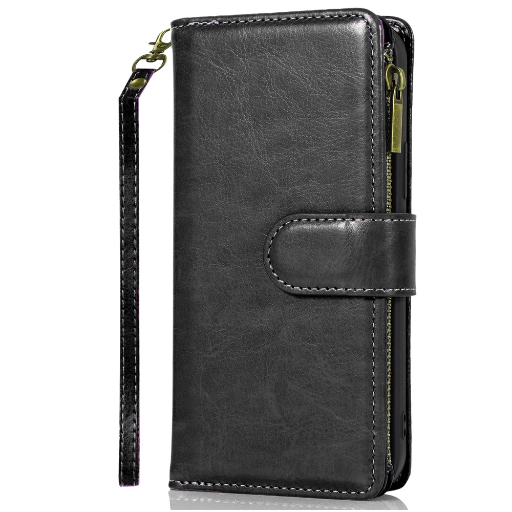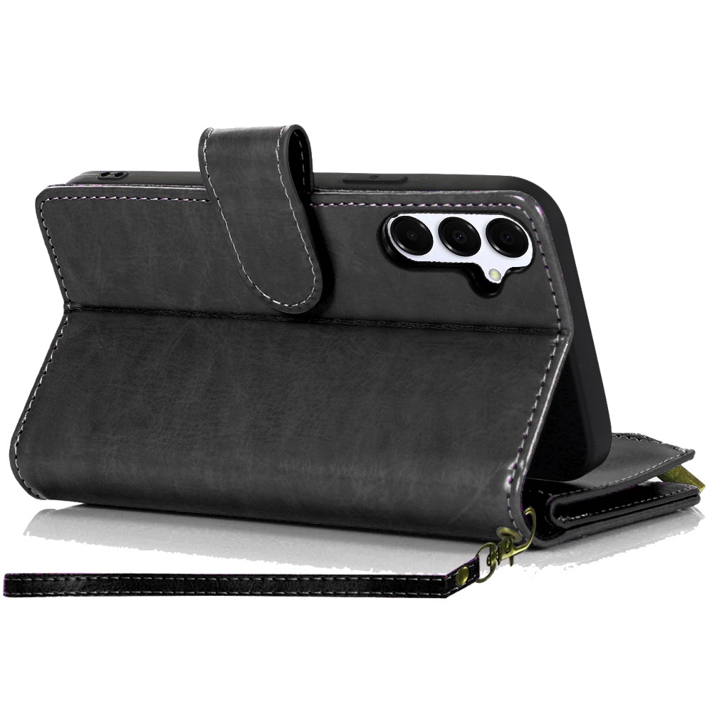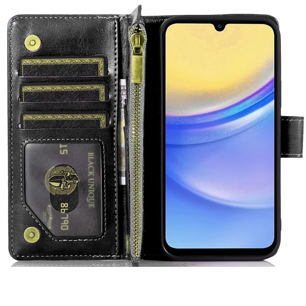 For Samsung A15 5G Luxury Wallet Card ID Zipper Money Holder - Black