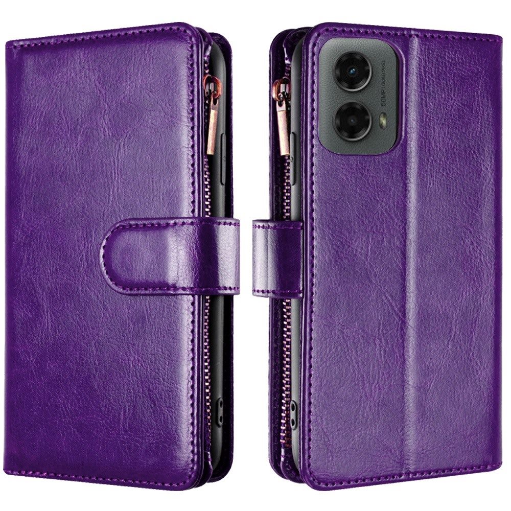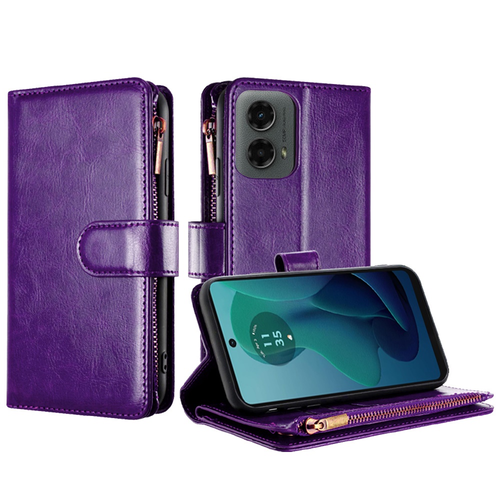 For Motorola Moto G 5G (2024) Luxury Wallet Card ID Zipper Money Holder - Dark Purple
