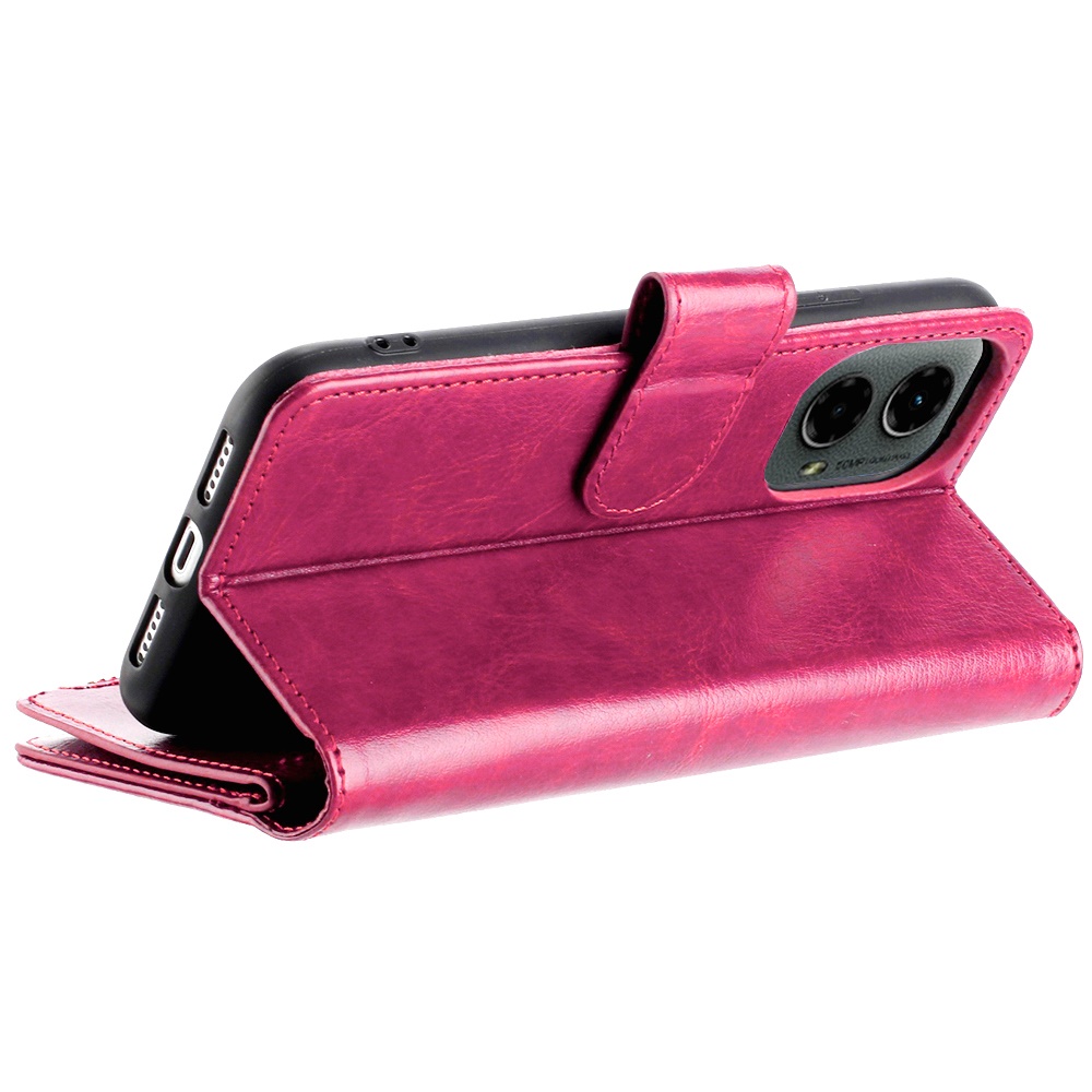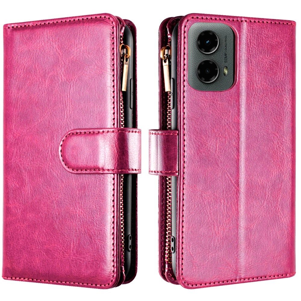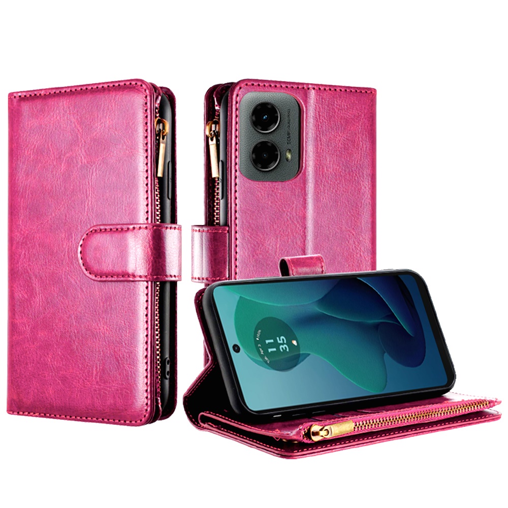 For Motorola Moto G 5G (2024) Luxury Wallet Card ID Zipper Money Holder - Hot Pink