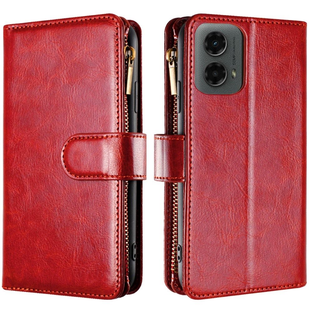 For Motorola Moto G 5G (2024) Luxury Wallet Card ID Zipper Money Holder - Red