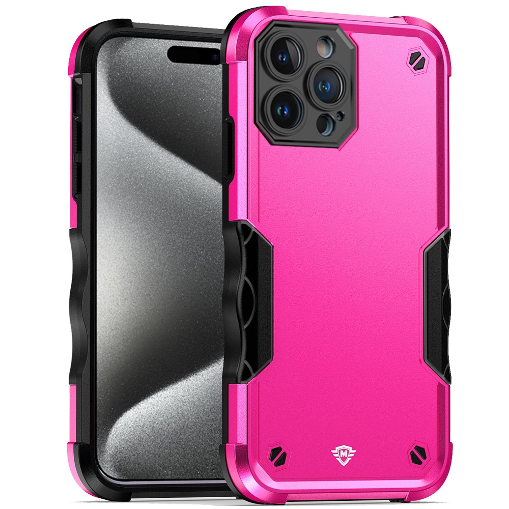 For iPhone 15 Pro Max Exquisite Tough Shockproof Hybrid - Hot Pink/Black